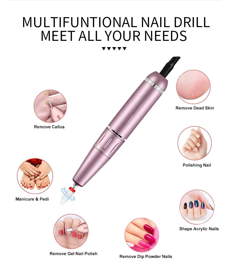 Característica del producto y aplicación del taladro para uñas estilo bolígrafo de velocidad ajustable