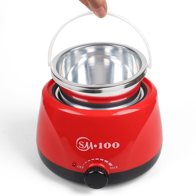 El producto es una máquina para derretir cera para depilación multifuncional con termostato ajustable, fácil de operar y puede derretir una variedad de ceras.