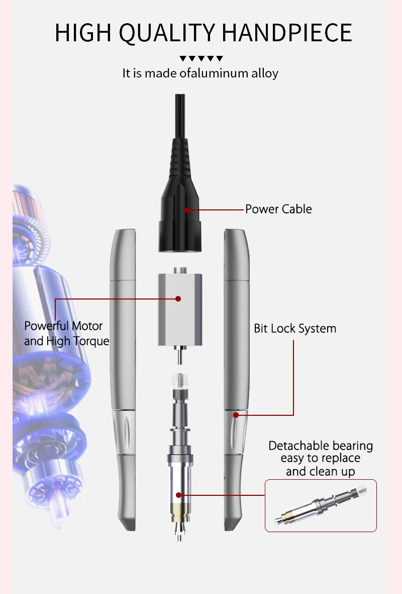 Juego de taladro de uñas portátil eléctrico con potente motor 65w 35000rpm