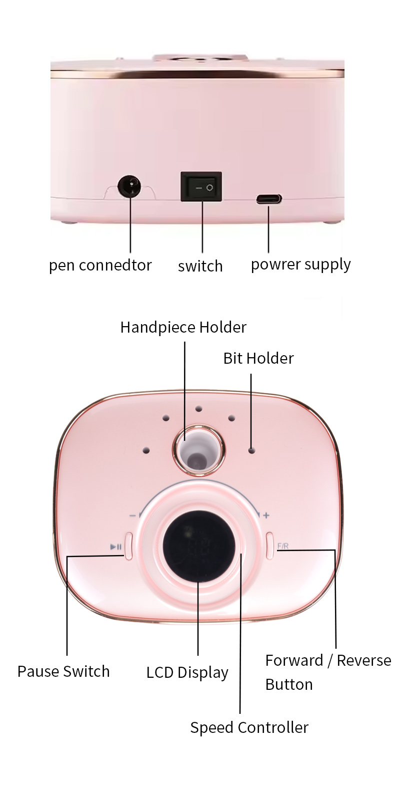 Taladro de uñas eléctrico no fácil de dañar la pieza de mano 65w 35000rpm