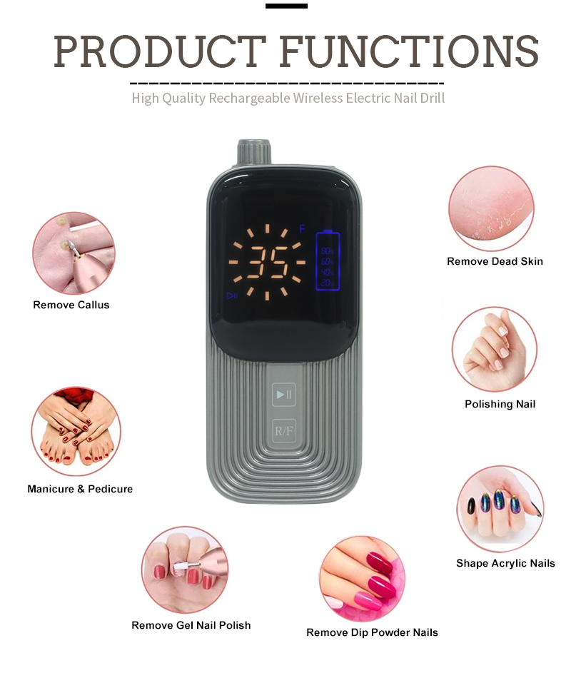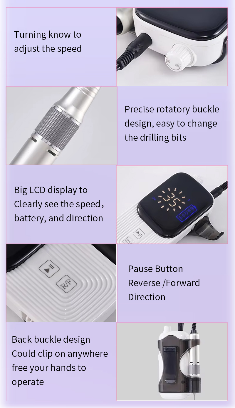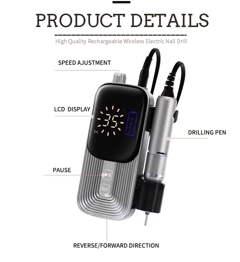 Características del producto y aplicaciones de la lima de uñas eléctrica de alta velocidad TMS-023 de 35 000 RPM para quitar esmalte de uñas