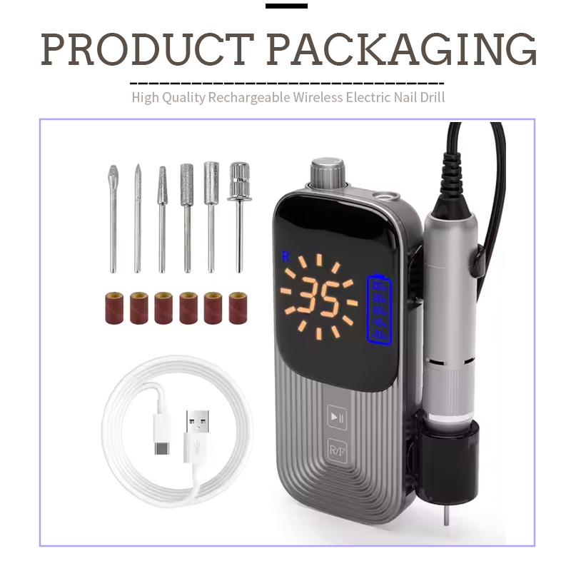 Juego de taladro de uñas portátil eléctrico con potente motor 65w 35000rpm