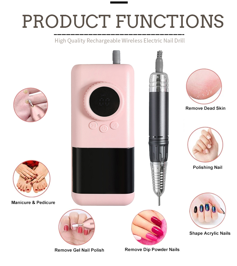 Juego de taladro de uñas portátil eléctrico con potente motor 65w 35000rpm