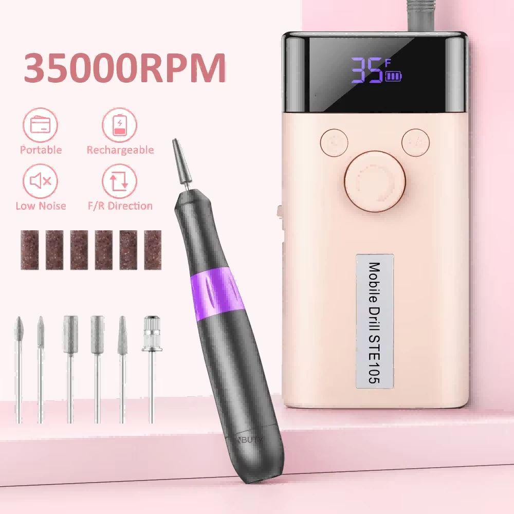 Juego de taladro de uñas portátil eléctrico con potente motor 65w 35000rpm