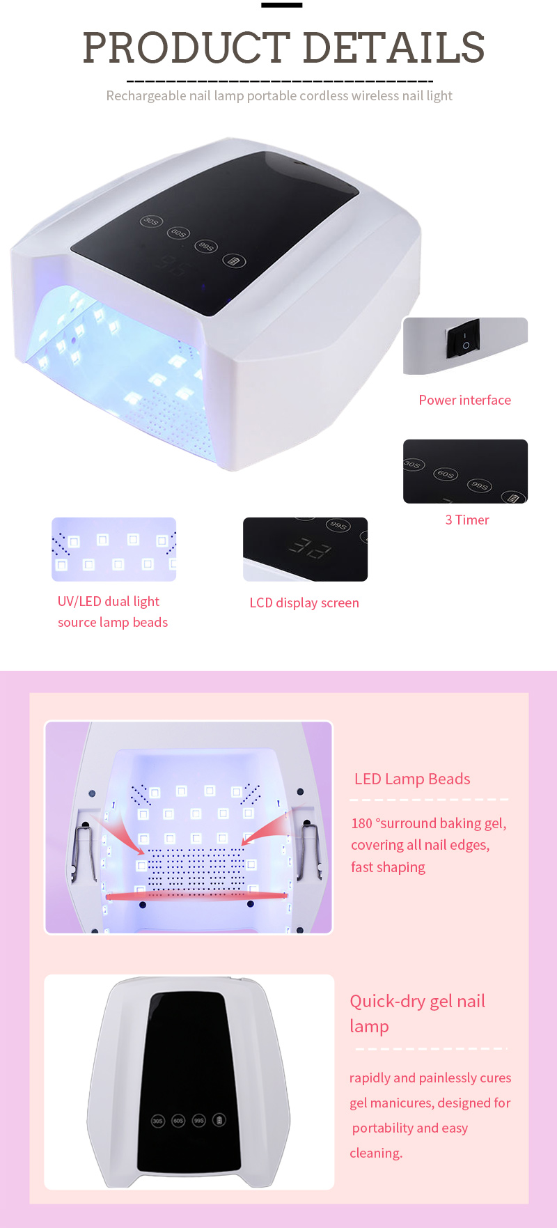 Secador de uñas recargable Lámpara de uñas UV 72w