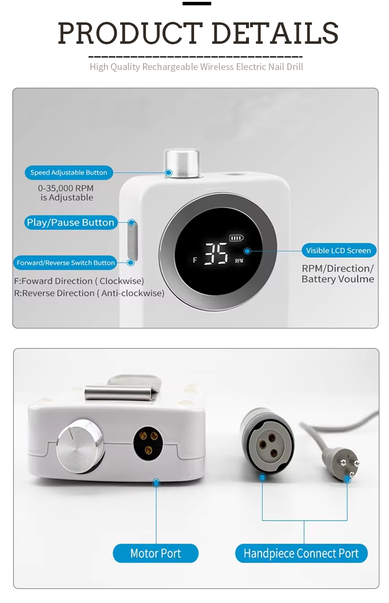 Características del producto y aplicaciones de la lima de uñas eléctrica de alta velocidad 808 de 35 000 RPM para quitar esmalte