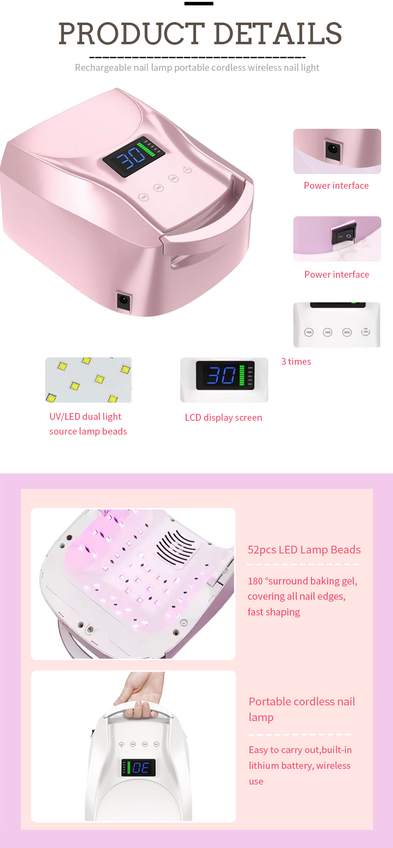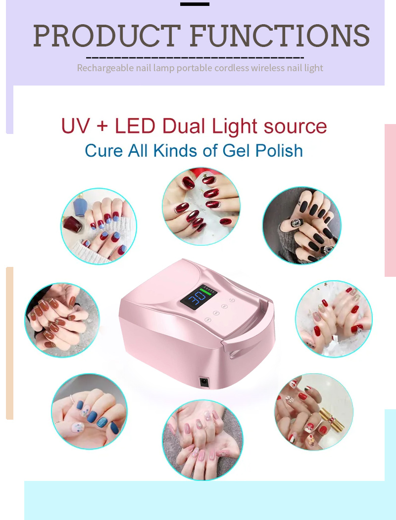1, cuentas LED de doble fuente de luz, puede hornear una variedad de pegamento para uñas y pegamento funcional.