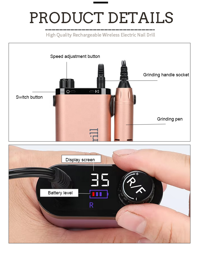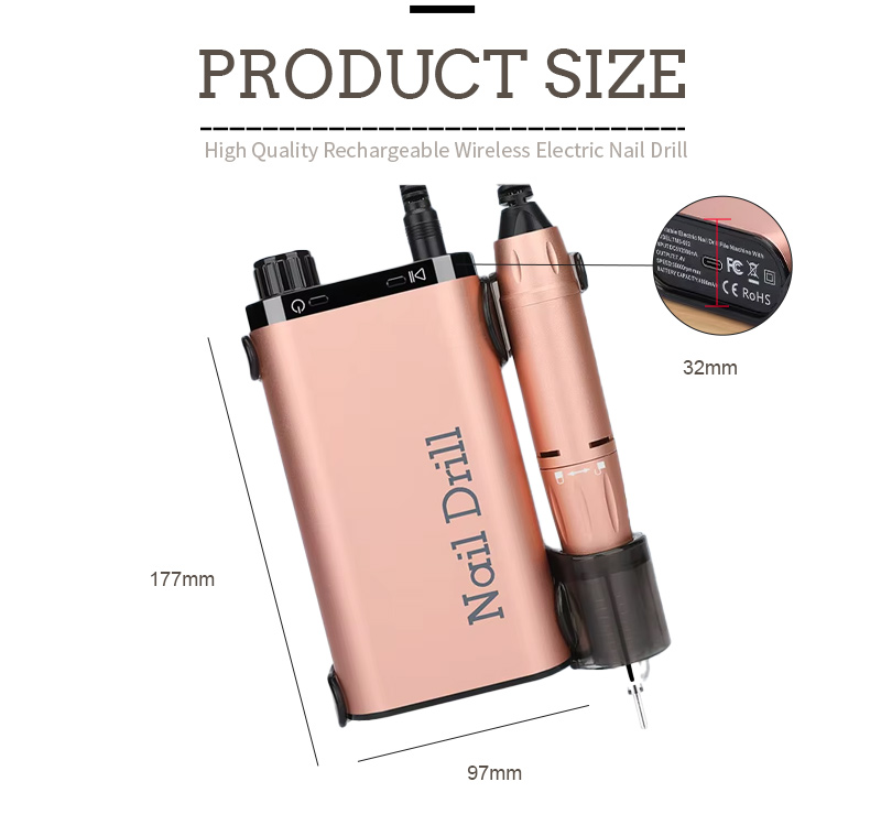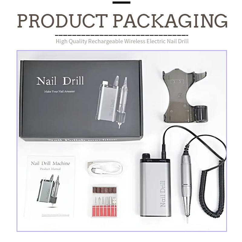 Juego de taladro de uñas portátil eléctrico con potente motor 65w 35000rpm