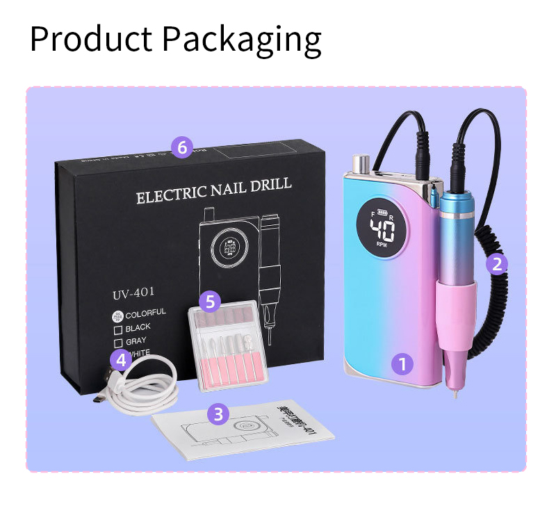 Juego de taladro de uñas portátil eléctrico con potente motor 65w 35000rpm