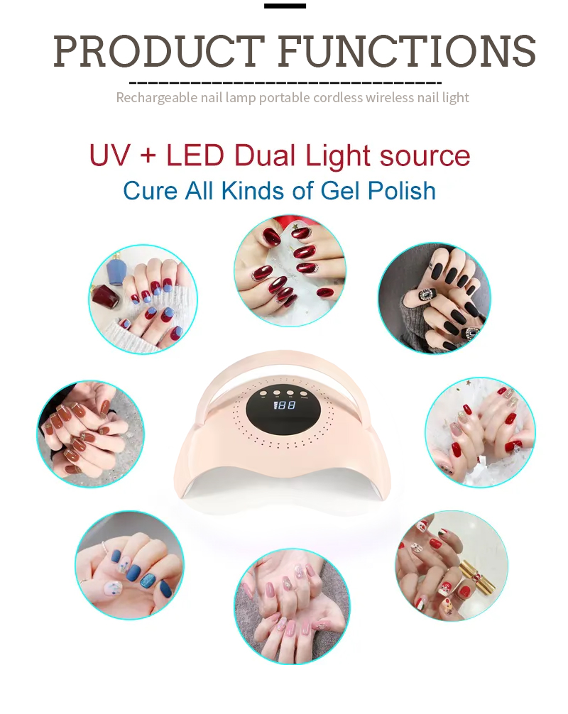 El producto garantiza un secado uniforme del pegamento sin encogimiento. Sus fuentes de luz duales proporcionan un calentamiento suave para evitar la decoloración de las manos y la fatiga visual, adecuadas tanto para manos como para pies, brindando resultados de secado notablemente rápidos.