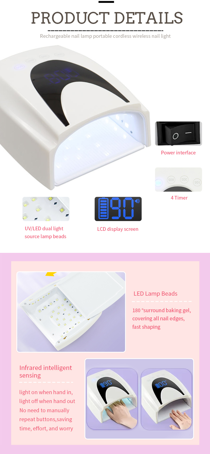 Lámpara Secadora De Uñas Blanco Curado Rápido 80w Portátil