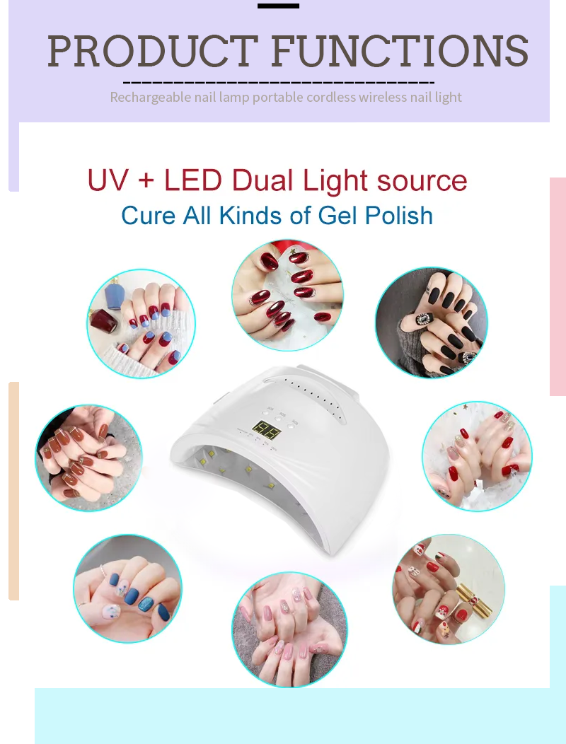 El producto garantiza un secado uniforme del pegamento sin encogimiento. Sus fuentes de luz duales proporcionan un calentamiento suave para evitar la decoloración de las manos y la fatiga visual, adecuadas tanto para manos como para pies, brindando resultados de secado notablemente rápidos.