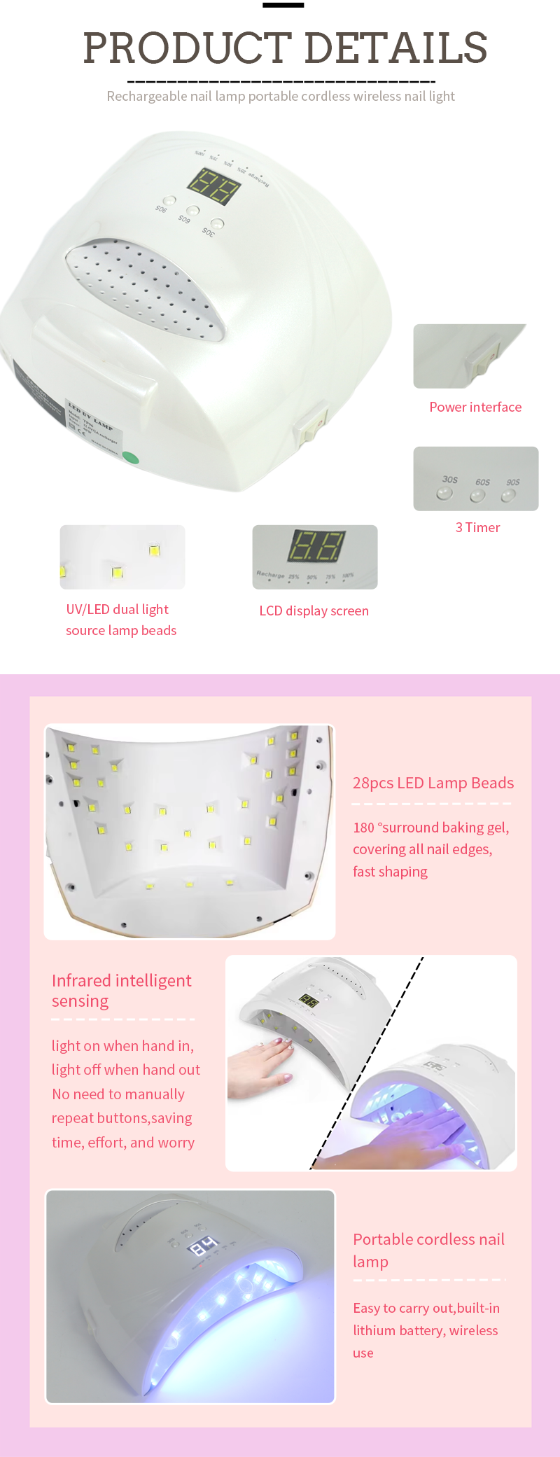 Lámpara Secadora De Uñas Blanco Curado Rápido 80w Portátil