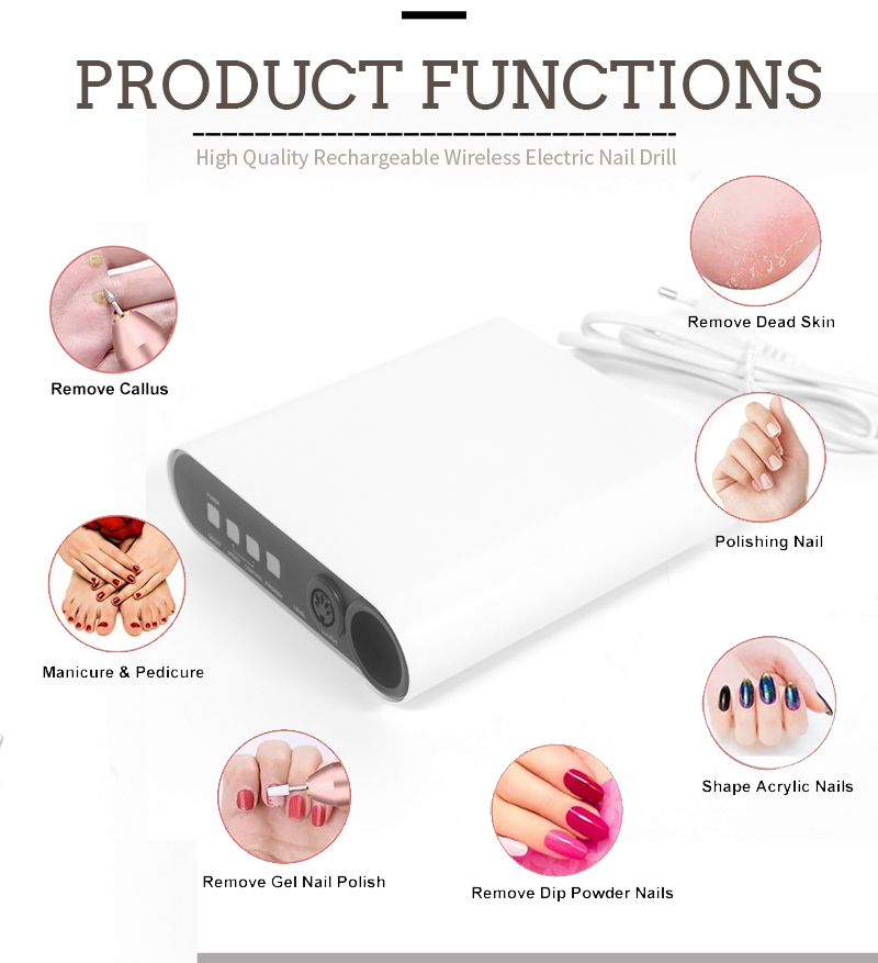 Juego de taladro de uñas portátil eléctrico con potente motor 65w 35000rpm