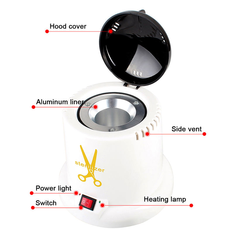 Este esterilizador genera calor principalmente a través de un anillo calefactor y utiliza altas temperaturas para la desinfección.