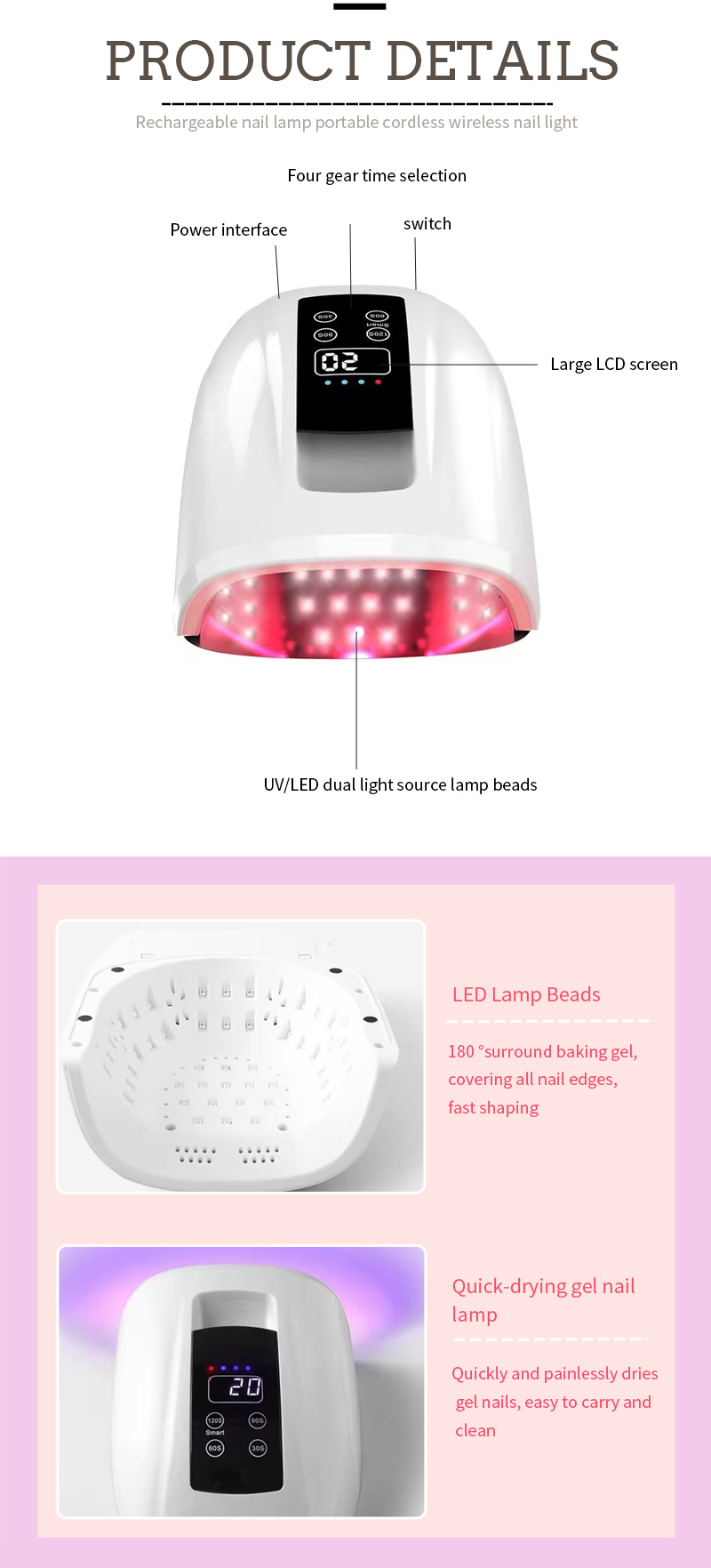 Lámpara Secadora De Uñas Blanco Curado Rápido 80w Portátil