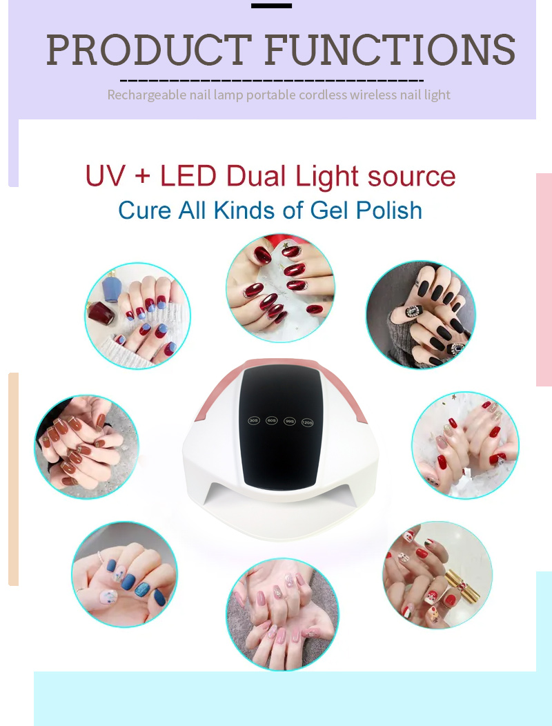 1, cuentas LED de doble fuente de luz, puede hornear una variedad de pegamento para uñas y pegamento funcional.