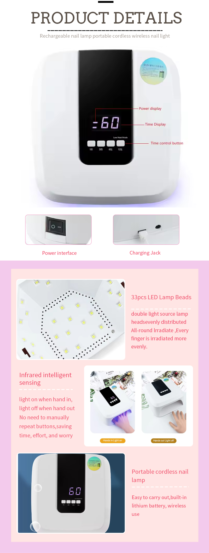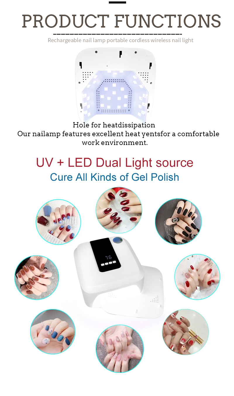El producto garantiza un secado uniforme del pegamento sin encogimiento. Sus fuentes de luz duales proporcionan un calentamiento suave para evitar la decoloración de las manos y la fatiga visual, adecuadas tanto para manos como para pies, brindando resultados de secado notablemente rápidos.