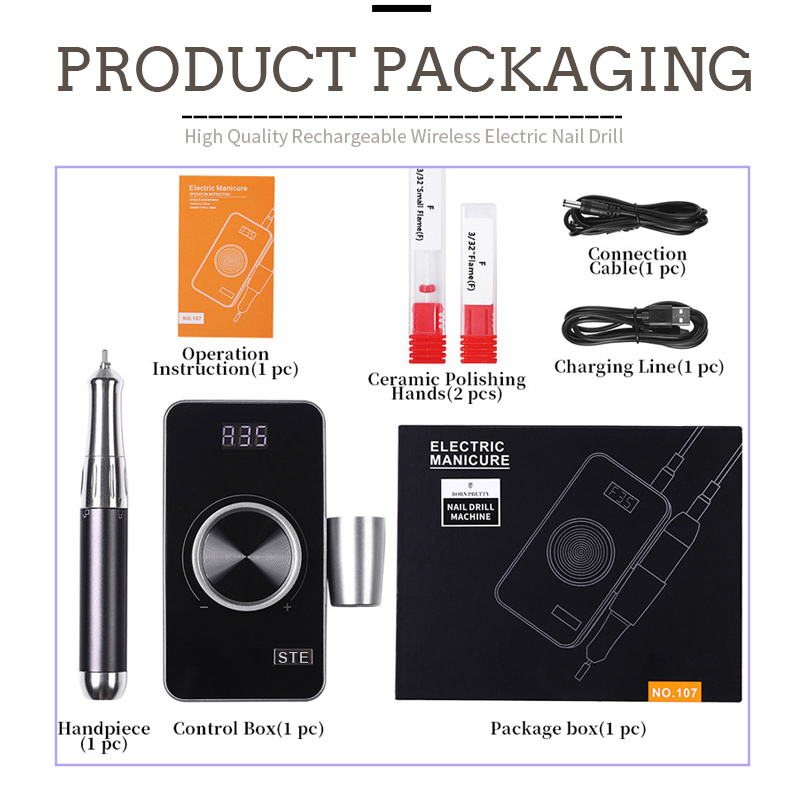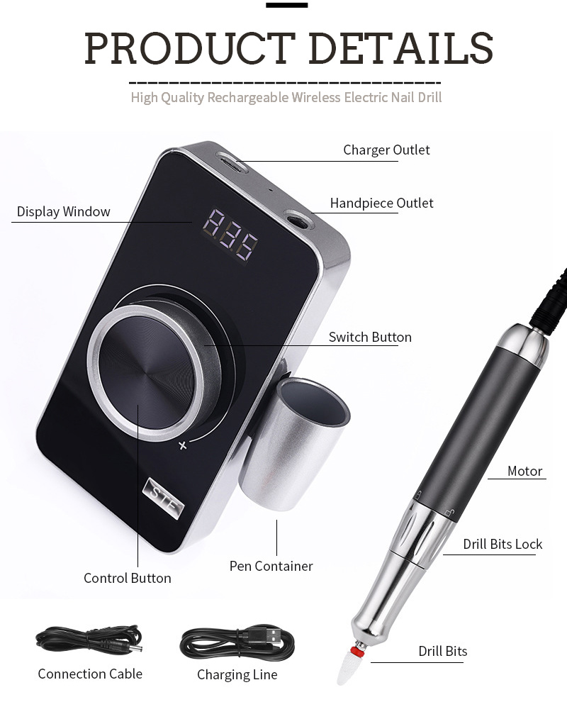 Juego de taladro de uñas inalámbrico recargable cerca de mí USB 45w 35000rpm