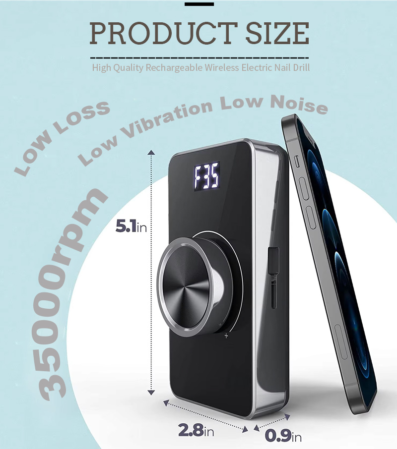 Juego de taladro de uñas recargable con potente pieza de mano 45w 35000rpm