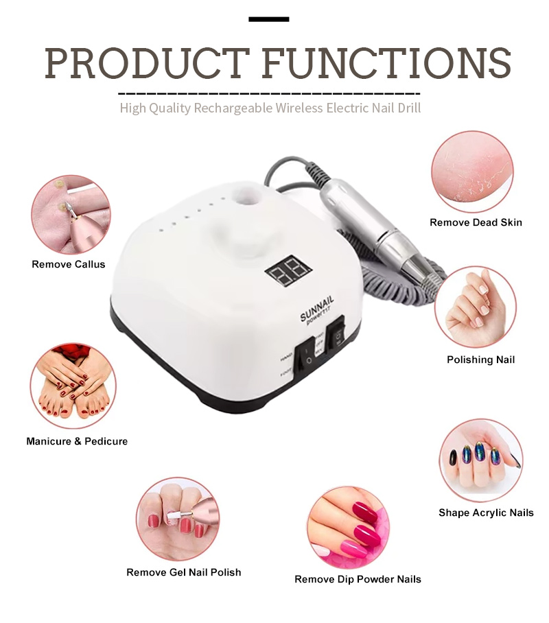 Juego de taladro de uñas recargable Taladro de uñas en los dedos de los pies 35w 35000rpm