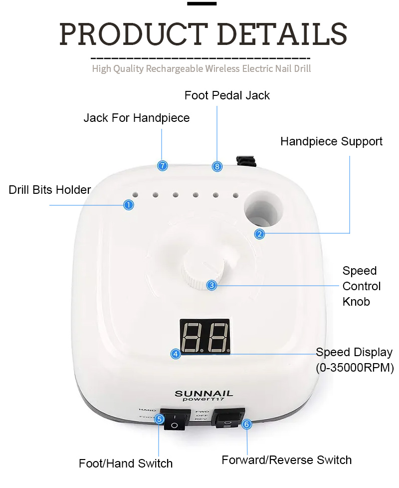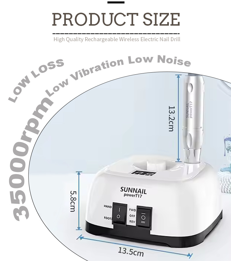 Característica del producto y aplicación de la lista de uñas eléctrica T17 High Speed 35000 RPM Rpm Poleador eléctrico