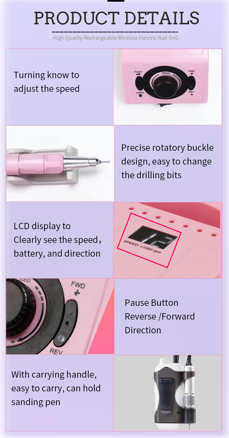 Juego de taladro de uñas portátil eléctrico con potente motor 65w 35000rpm